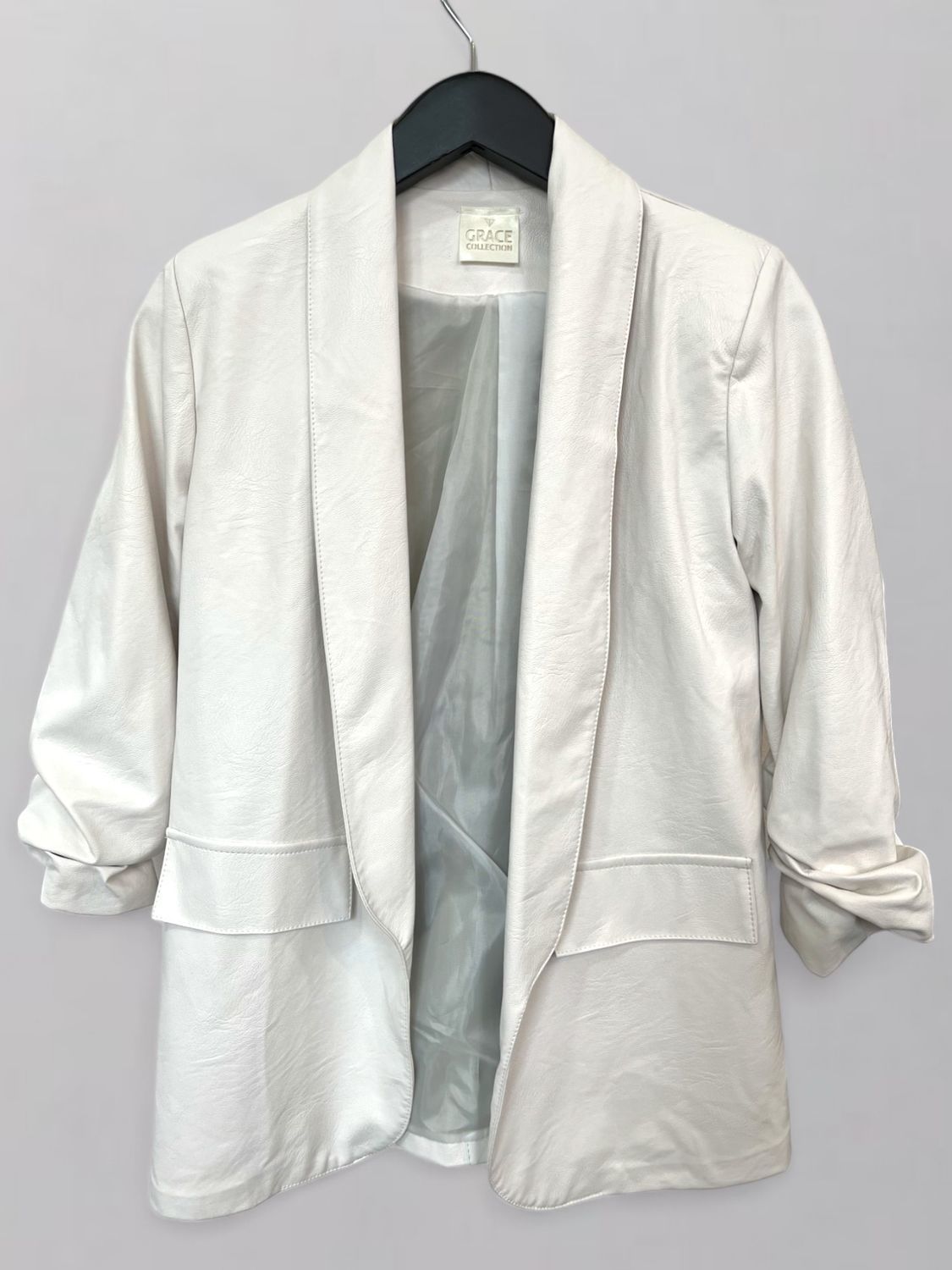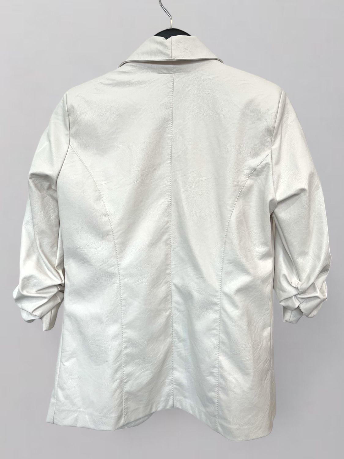 Blazer de eco cuero con manga fruncida. Talle único que va a un M/L.