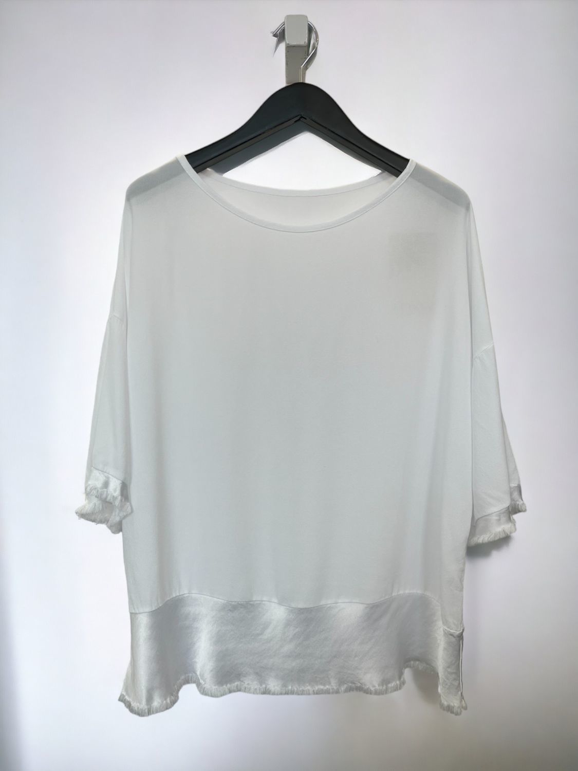 Blusa amplia con guarda en satén. Talle único que va hasta un XXL.