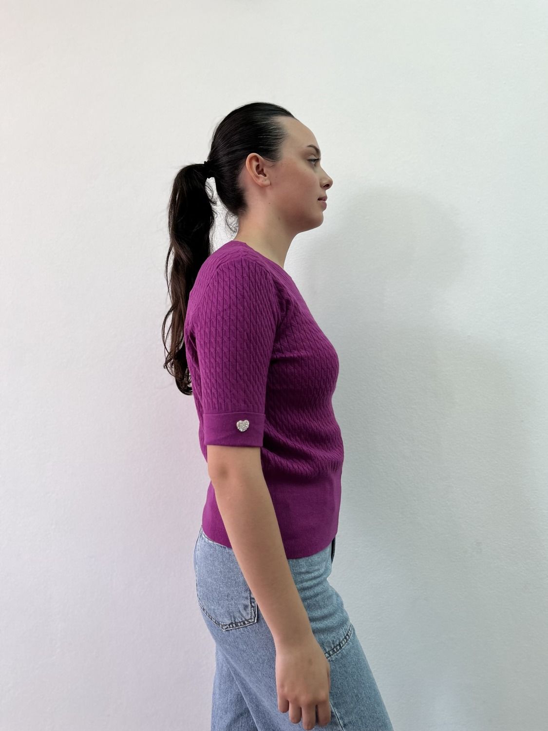 Sweater italiano manga corta, tejido trenzado. Talle único adaptable.