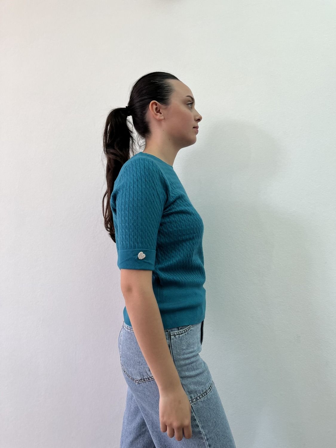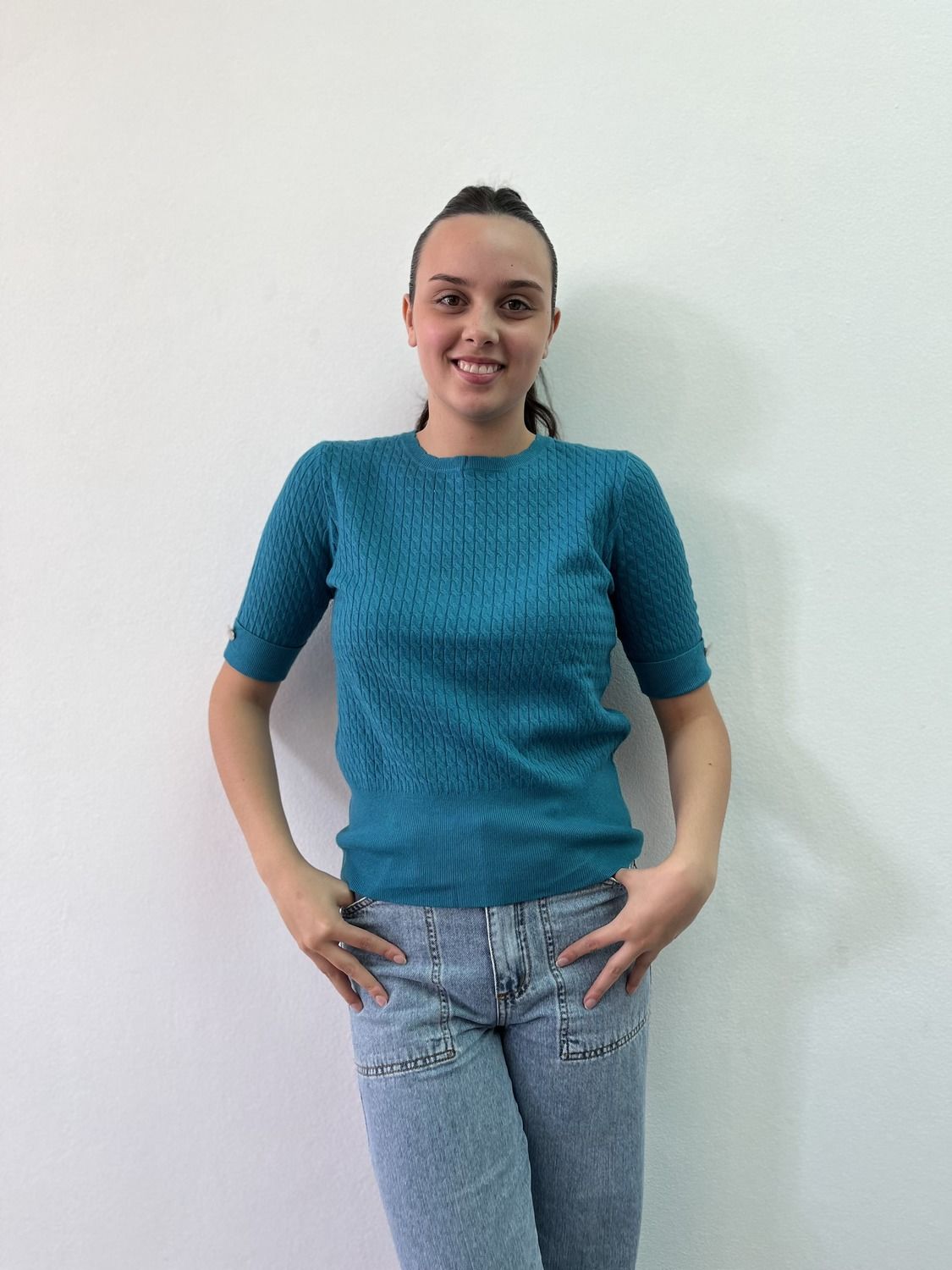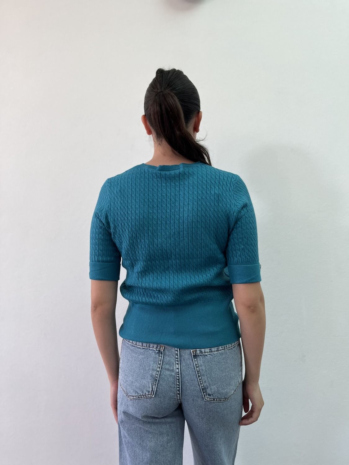 Sweater italiano manga corta, tejido trenzado. Talle único adaptable.