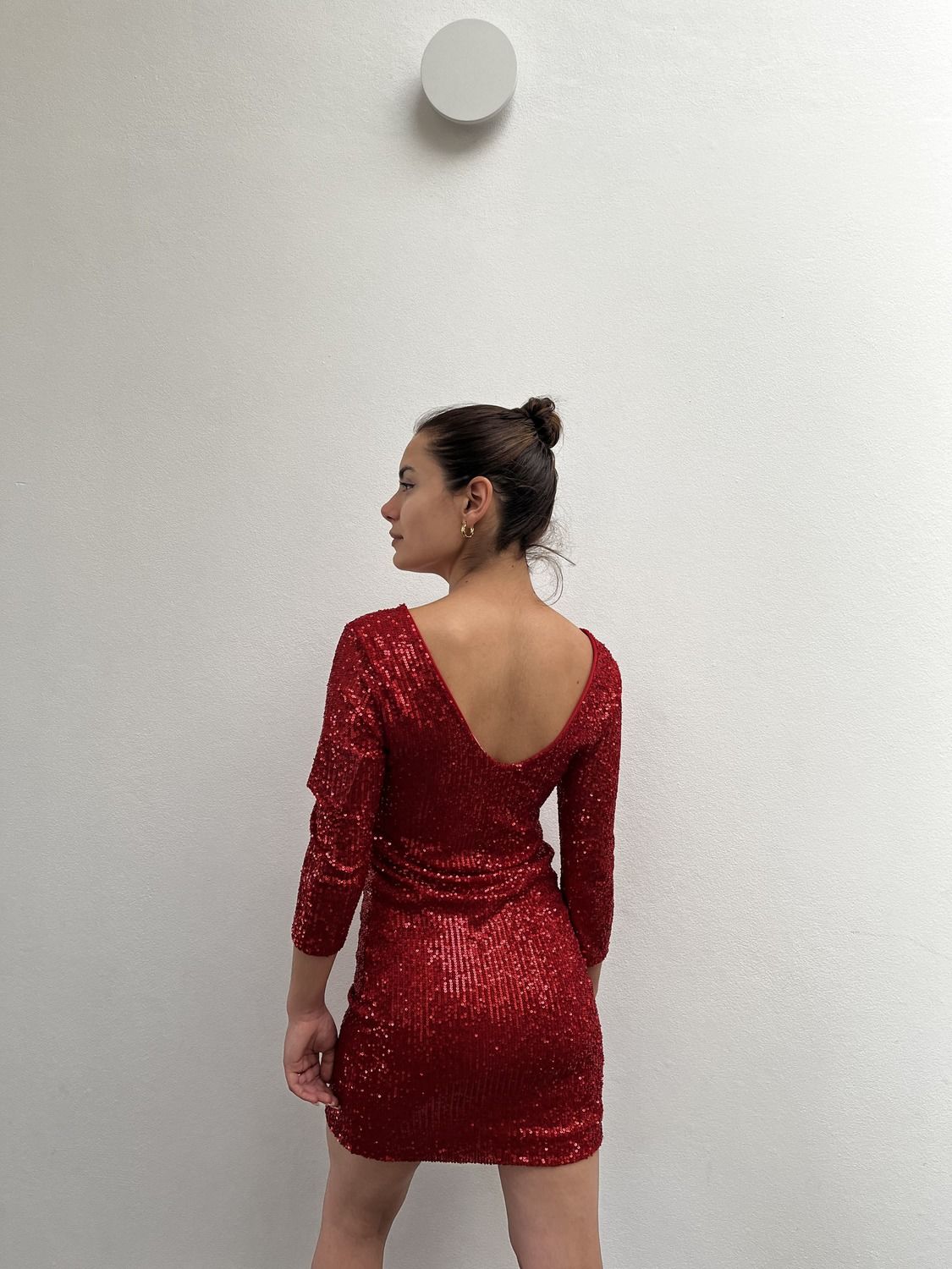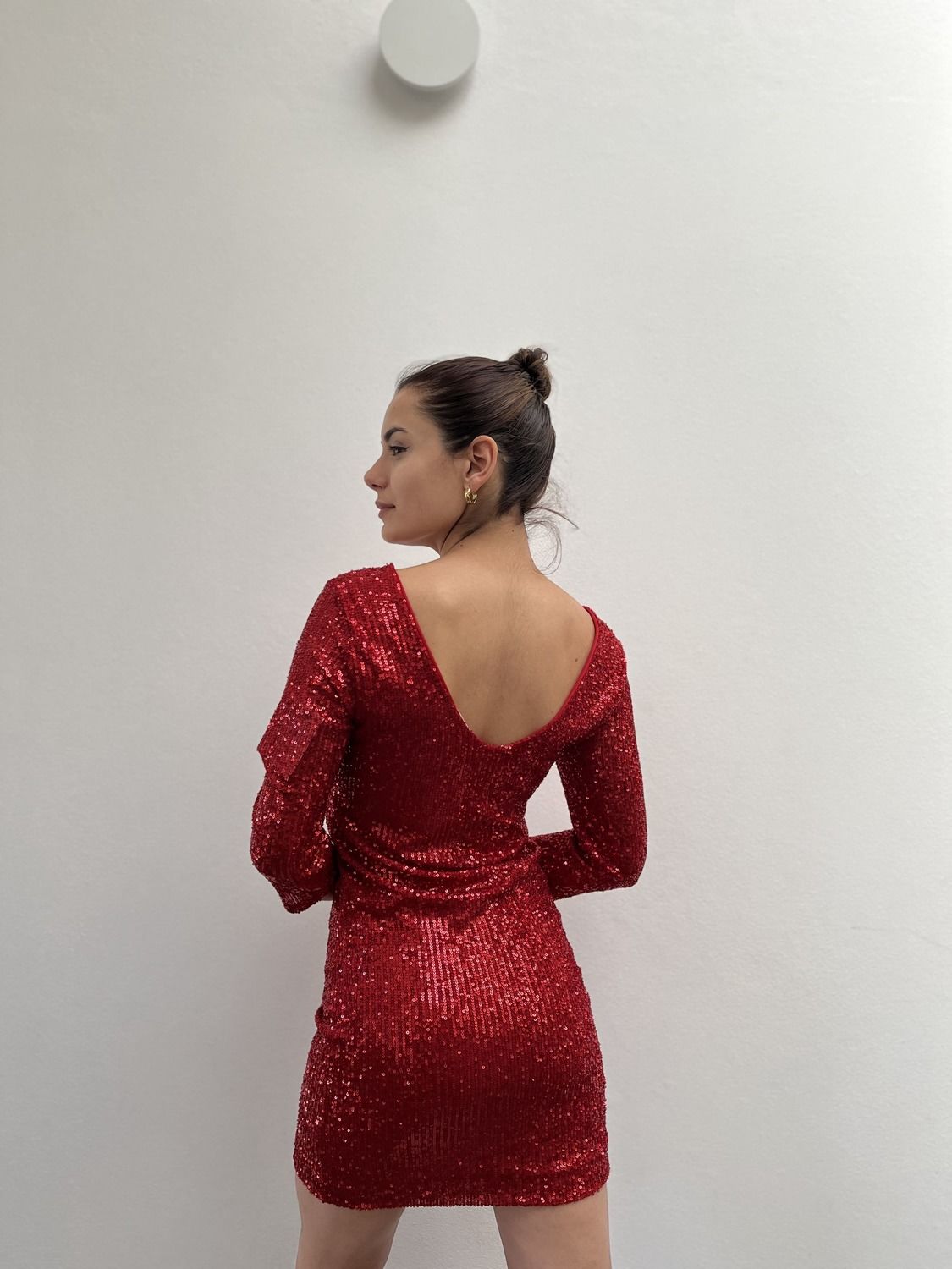 Vestido corto con lentejuelas y escote pronunciado en la espalda. Talle único.
